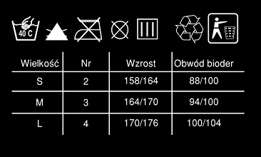 - Dostępne rozmiary: 2/S, 3/M, 4/L.